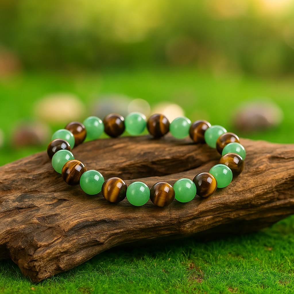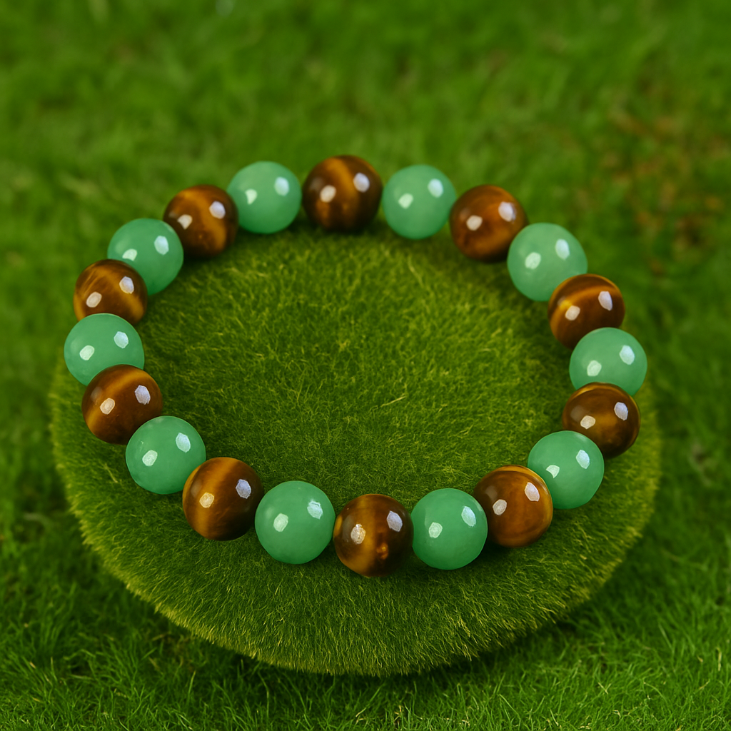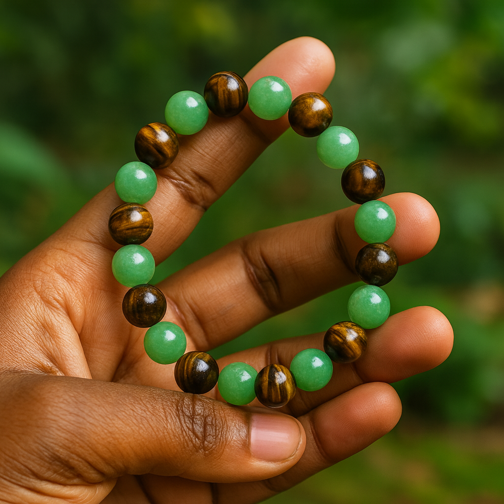 This is not just a bracelet—it’s a tool for transformation. The Abundant Confidence Bracelet combines the energy of two powerful stones: Green Aventurine, the “Stone of Opportunity,” and Tiger’s Eye, the “Stone of Courage.” Together, they form a wearable frequency that helps you magnetize wealth, success, and emotional strength.