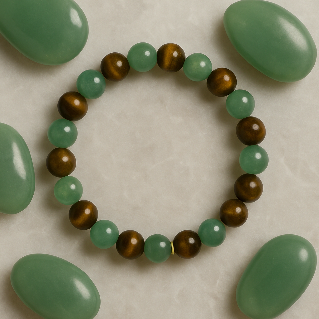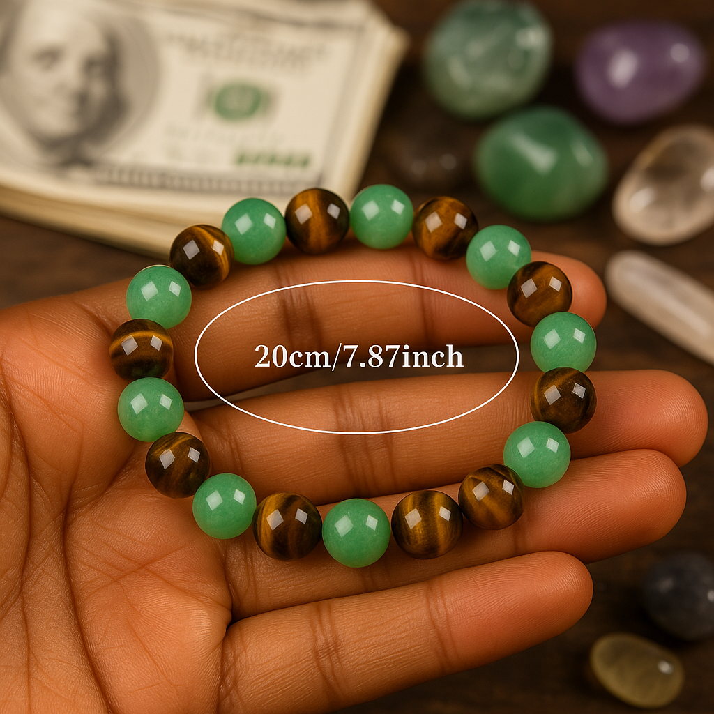 “I’ve been into crystals for years, but this bracelet is different. It feels intentionally made. The tiger eye helps me stay focused, and the green aventurine? That’s heart and wallet magic.”