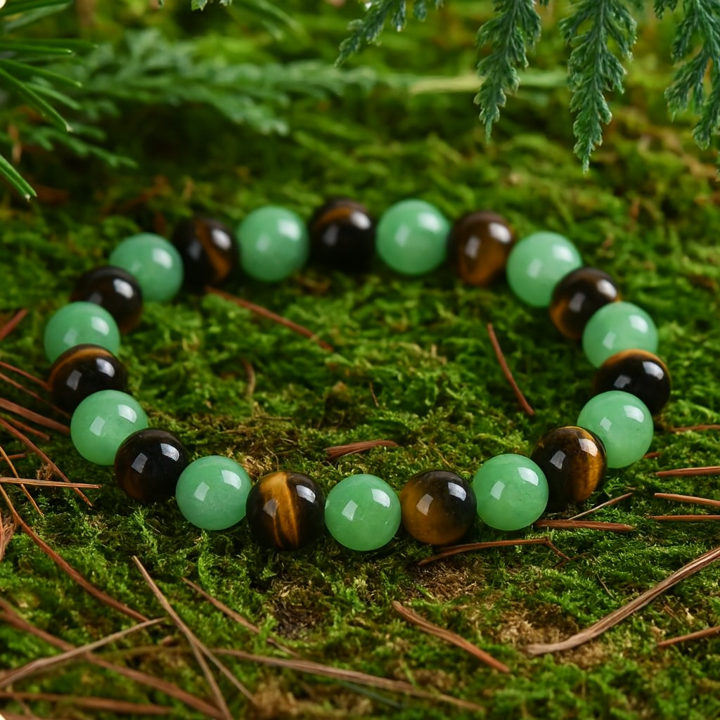 • A blend of green aventurine and tiger’s eye to support clarity, confidence, and financial flow.