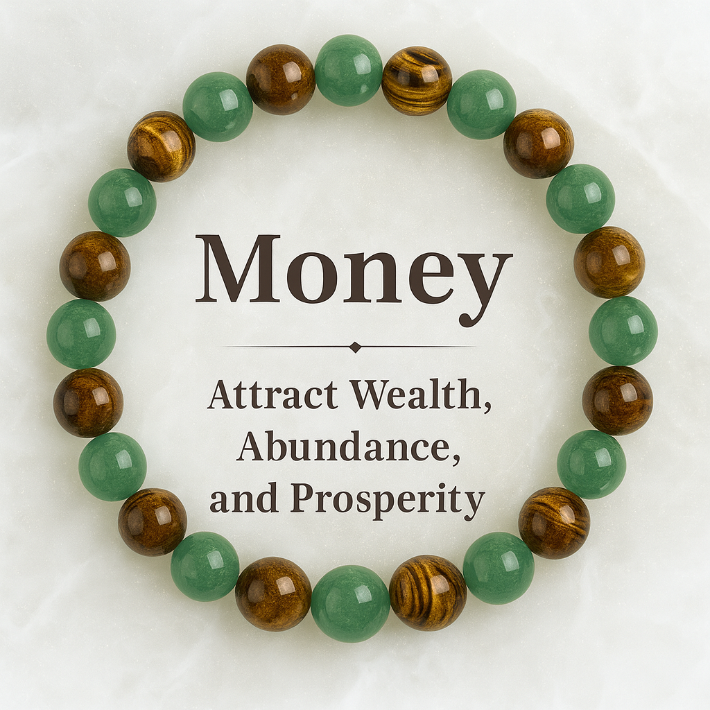 Designed to be more than an accessory, Omera's Money Bracelet™ channels ancient crystal wisdom into your everyday flow. With each bead of Tiger’s Eye and Green Aventurine, you're inviting balance, courage, and magnetic prosperity into your life—subtly aligning your energy with the frequency of wealth every time you wear it.